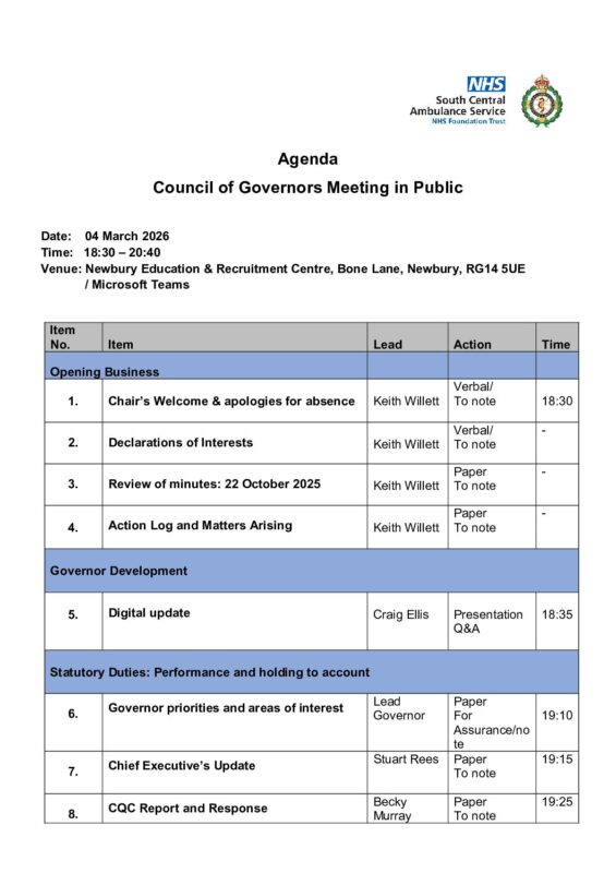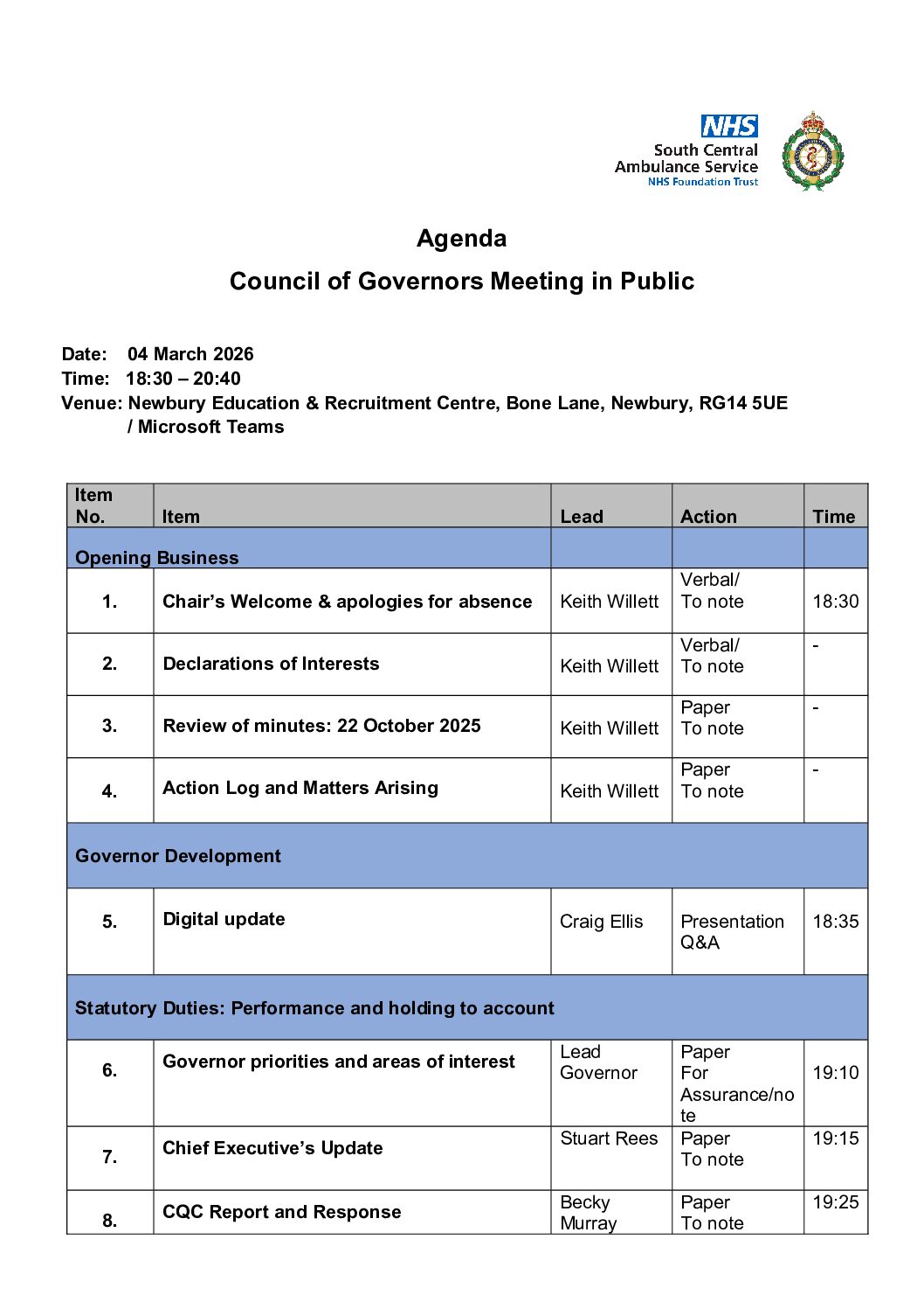 CoG 2025-26, Council of Governor meeting papers, Next CoG