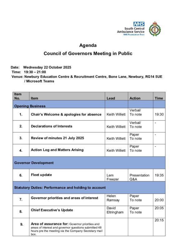 SCAS Council of Governors 22 October 2025